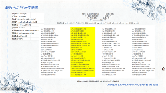 脉诊模块,团队先将包括中医28脉的文字特征,转化为计算机语言和数学模型。借助知医邦自主研发的脉象仪采集脉图,从脉位(深度、长度)、脉数(频率、节律)、脉形(宽度、紧张度、饱满度)、脉势(流利度、力度、坡度)四大维度。把主观模糊的脉感转化为可量化的指标,并与数据库特征精准匹配,实现脉象客观判别。在此基础上依托海量临床数据反向演算、验证并修正腕脉曲线模型与核心算法,通过类似于人机双盲校验方式反复核验,对比差异、迭代优化,持续提升AI脉象识别的准确度与稳定性。