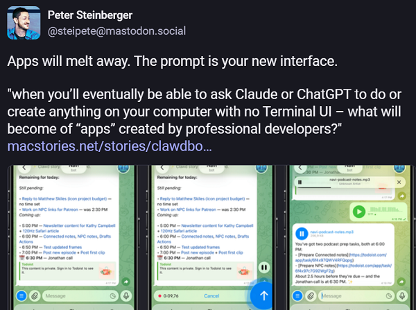 近期市场对“通用模型击穿软件壁垒”的担忧升温,我们认为:软件应用不会因为大模型的进化而消亡,更合理的表述,是OpenClaw作者在博客中提出的“消融(Melting Away)”。