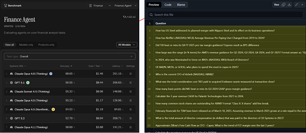 2月6日,Anthropic称Claude Opus 4.6在Finance Agent Benchmark跑分登顶,引发美股金融信息服务类软件股价一度暴跌10%以上,也加剧了从业者的焦虑。实际上,这个开源评测集大多是数据查询、信息检索题,对于投研任务来说,还是过于简单了。