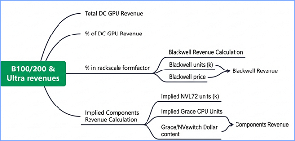 对于英伟达,哪怕是初级人类分析师,也会将公司的GPU(数据中心)业务进一步拆分为A、H、B、Rubin和其他衍生收入的细项,并针对B卡带来的隐含销售收入(如机柜、Grace CPU等)做出测算。